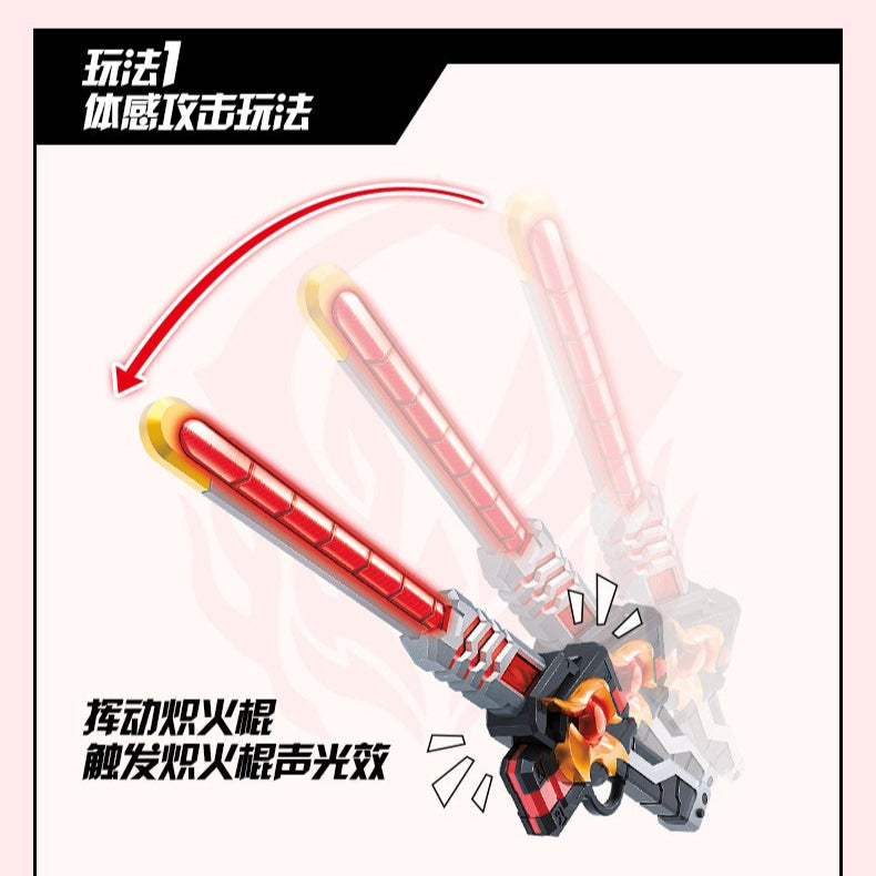 The Blazing Stick is Armor Hero Rayferno's primary weapon.