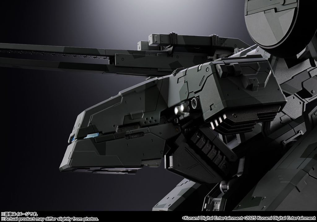 Featuring metal alloy in various parts and its iconic camouflage pattern beatifully painted on its body. This definitive edition of METAL GEAR REX also features a lighting function.