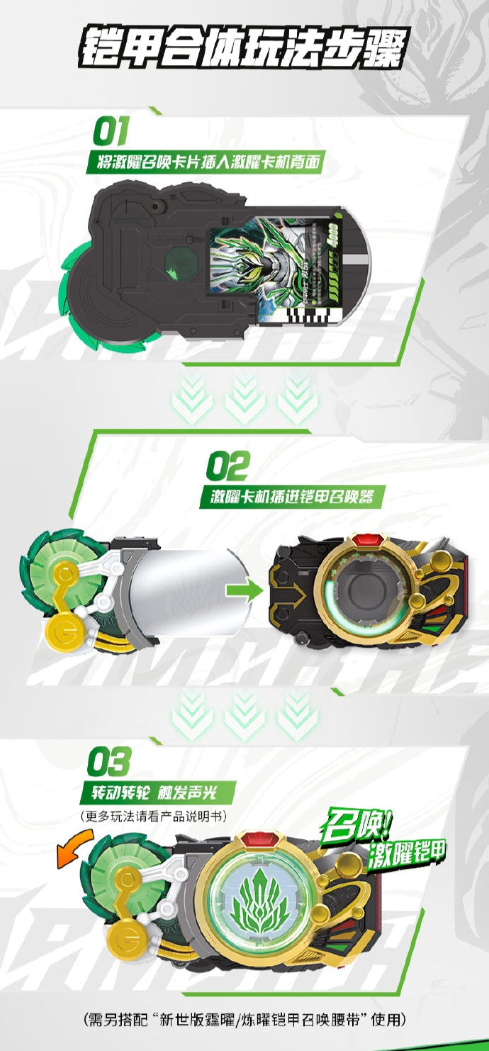 Insert a card into the holder, then insert into the summoning belt and activate the holder. The card's symbol appears on the belt's screen and the transformation sequence begins!