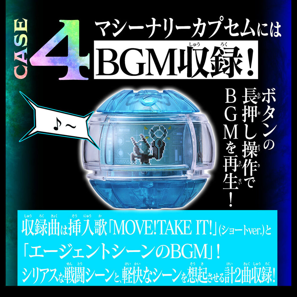 Each Capsem includes 6 sound effects, with iconic lines and transformation calls. The Machine Capsem also the "Move! Take It!" BGM track.