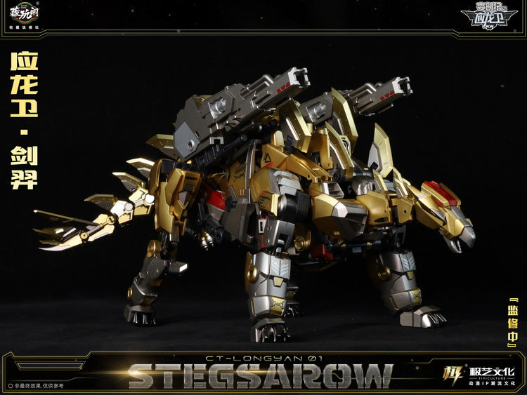 Featuring diecast parts and standing 9.4" in robot mode (nearly 14" with wings extended), this robot is also capable of transforming into a 16" long Stegosourus!
