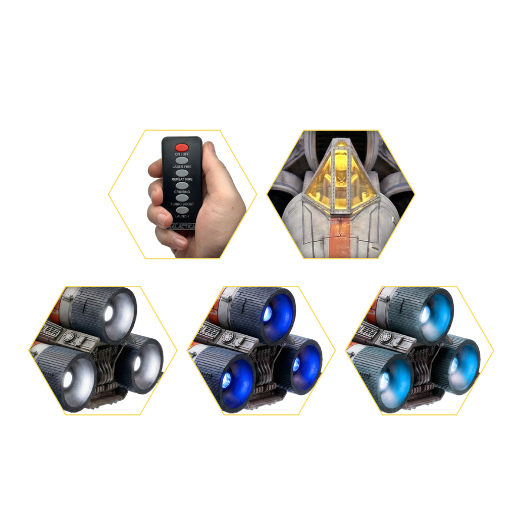 From the classic 1970s television series Battlestar Galactica comes the Colonial Viper Electronic Vehicle, the iconic starfighter of the Ragtag Colonial Fleet. Scaled to fit 3.75" action figures, this detailed vehicle brings the excitement of the series to life with light and sound features operated by remote control.