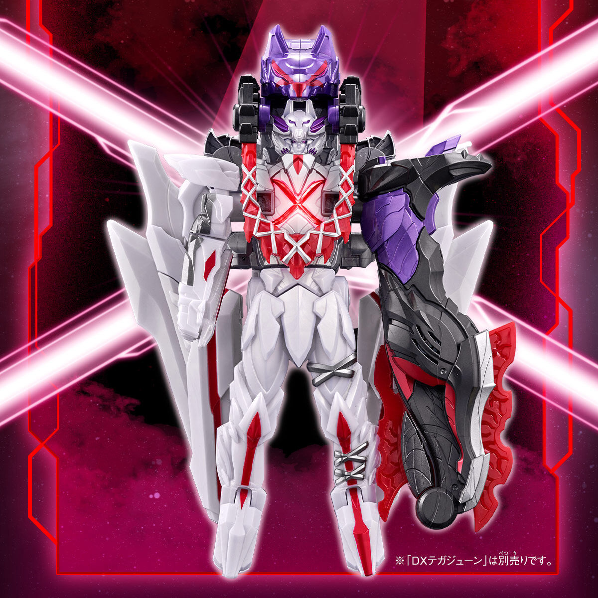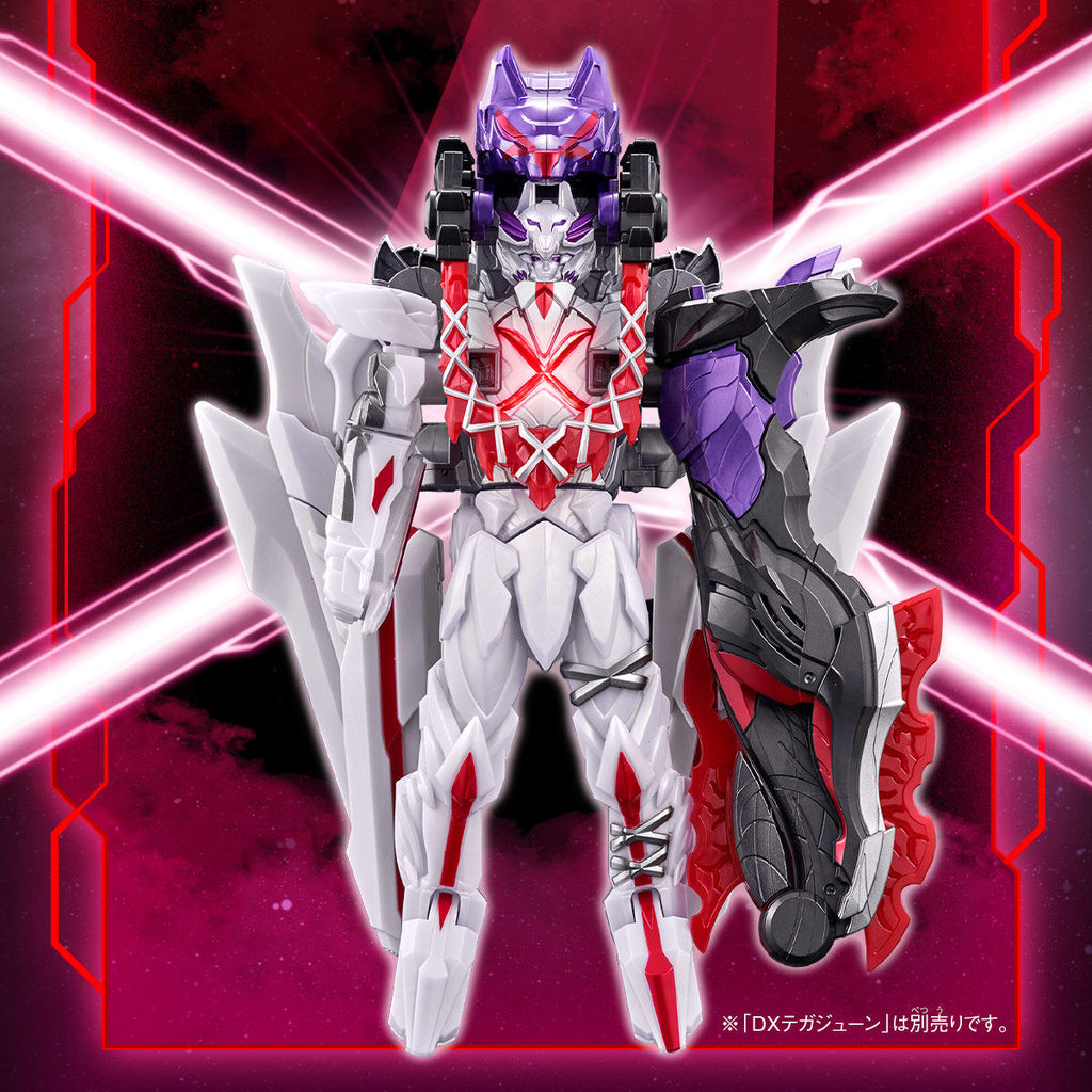 A special TegaJune Wolf Sentai Ring is included as well. When used in the DX TegaJune (sold separately), the Dark Wolf Decalibur summoning sounds are played!