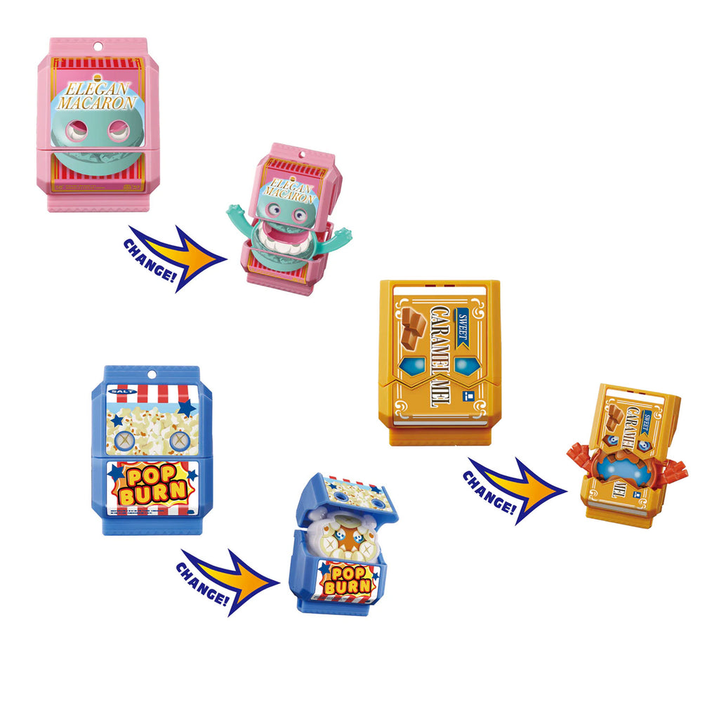 Set includes re-releases of 3 DX Gochizo: Elegan Macaron, Pop Burn and Caramel Mel -- each are compatible with the DX Henshin Belt Gavv (sold separately).
