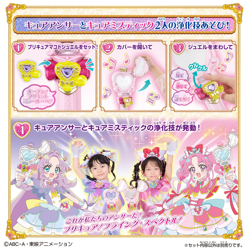 The Mirror Magnifying Glass is a purification item used by the two Precure characters not only for purification techniques but also as a detective tool!