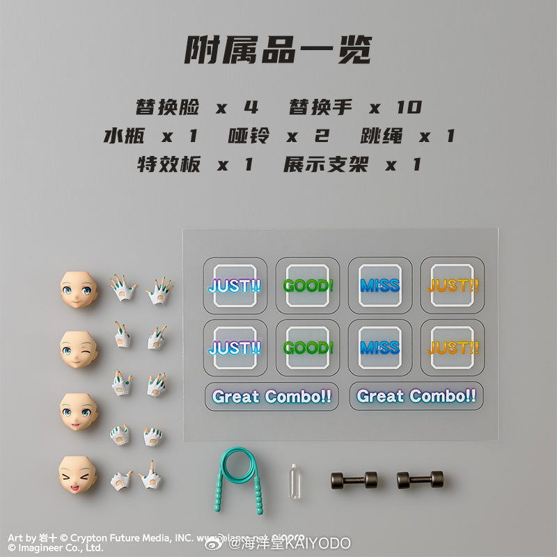 Standing appx 6" tall, this Hatsune Miku figure includes a number of accessories: