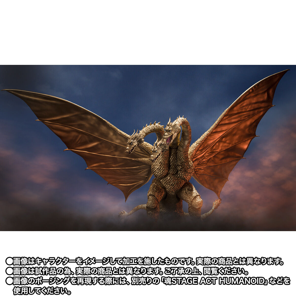 Sculpting and coloring are done by the leading Godzilla sculptor, Yuuji Sakai, who produced the prototype, as well as the sculpting and coloring. The suit from 1972 has been thoroughly reproduced with reference to numerous materials. The detailed scales of "King Ghidorah" are also carefully reproduced one by one.